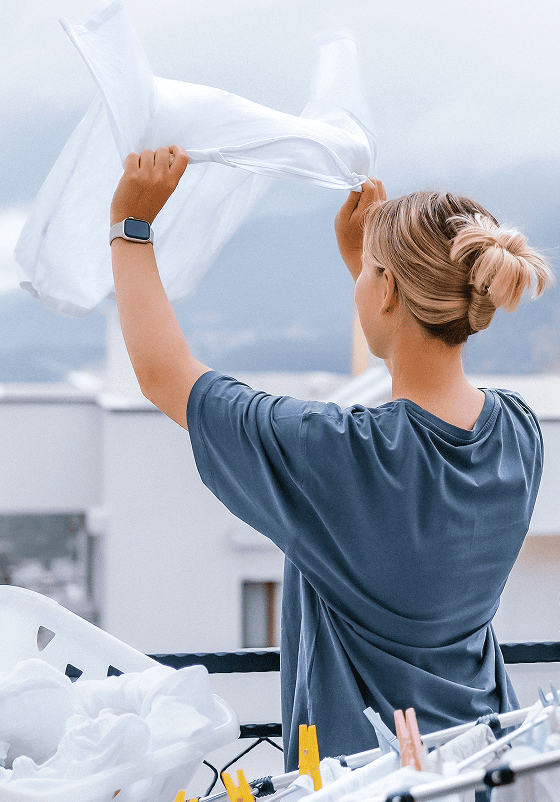 Tu ropa se lava con cuidado y se dobla cuidadosamente, para que vuelva limpia, impecable y lista para usar.